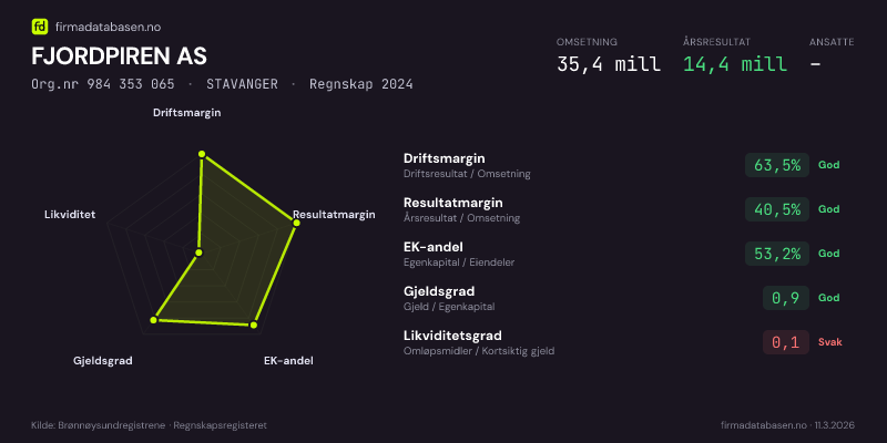 FJORDPIREN AS,STAVANGER — jo større areal, jo sterkere økonomi.Org.nr 984 353 065 · Regnskap2024