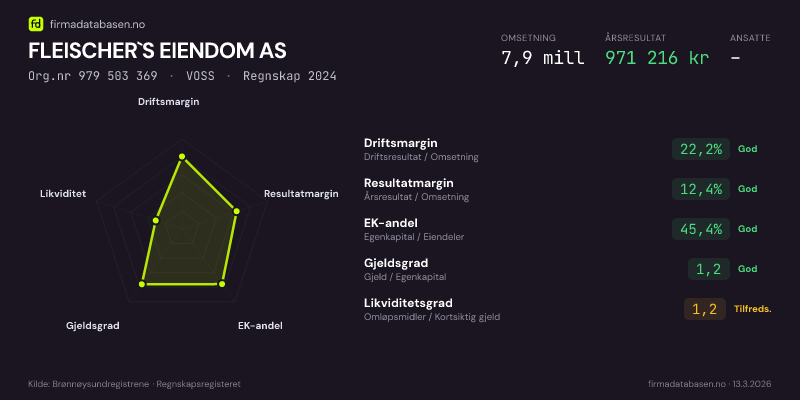 FLEISCHER`S EIENDOM AS,VOSS — jo større areal, jo sterkere økonomi.Org.nr 979 503 369 · Regnskap2024