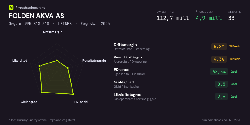 FOLDEN AKVA AS,LEINES — jo større areal, jo sterkere økonomi.Org.nr 995 818 310 · Regnskap2024