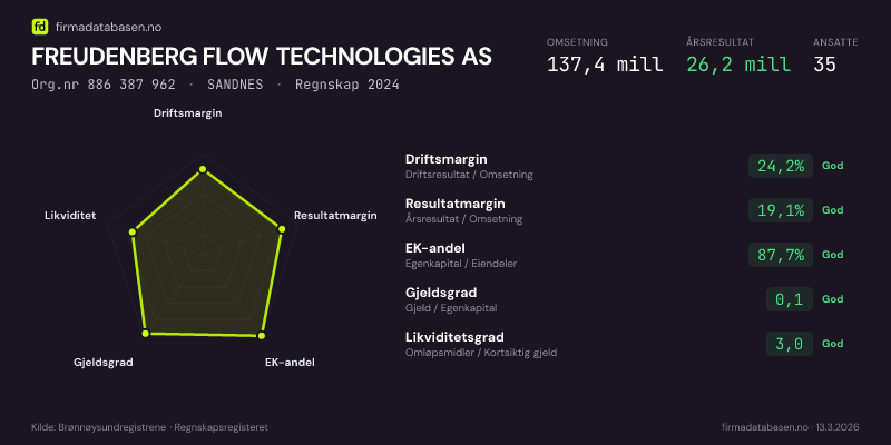FREUDENBERG FLOW TECHNOLOGIES AS,SANDNES — jo større areal, jo sterkere økonomi.Org.nr 886 387 962 · Regnskap2024