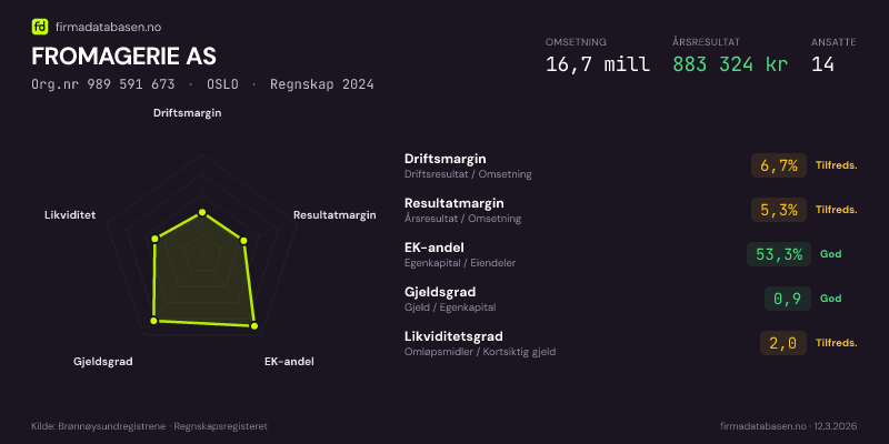 FROMAGERIE AS,OSLO — jo større areal, jo sterkere økonomi.Org.nr 989 591 673 · Regnskap2024