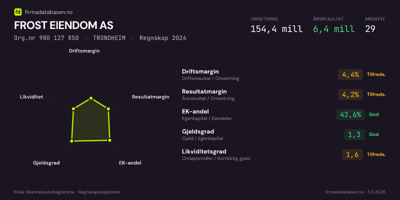 FROST EIENDOM AS,TRONDHEIM — jo større areal, jo sterkere økonomi.Org.nr 980 127 850 · Regnskap2024