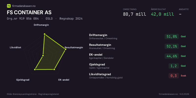 FS CONTAINER AS,OSLO — jo større areal, jo sterkere økonomi.Org.nr 919 856 084 · Regnskap2024
