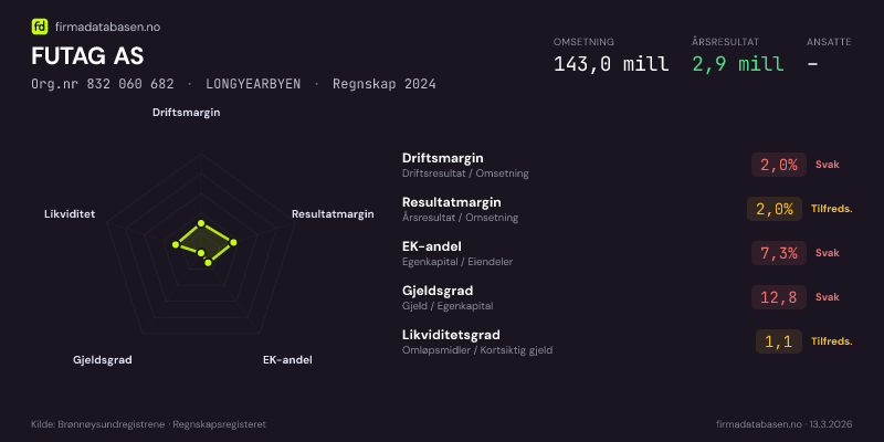 FUTAG AS,LONGYEARBYEN — jo større areal, jo sterkere økonomi.Org.nr 832 060 682 · Regnskap2024