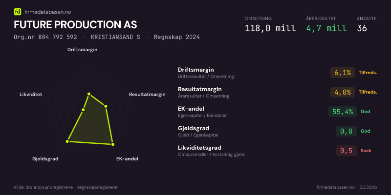 FUTURE PRODUCTION AS hadde en omsetning på 118.0 mill i 2024, med driftsmargin på 6.1%.