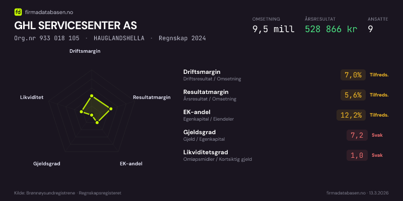 GHL SERVICESENTER AS,HAUGLANDSHELLA — jo større areal, jo sterkere økonomi.Org.nr 933 018 105 · Regnskap2024