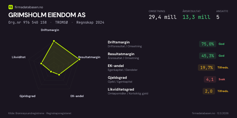 GRIMSHOLM EIENDOM AS,TROMSØ — jo større areal, jo sterkere økonomi.Org.nr 976 540 158 · Regnskap2024