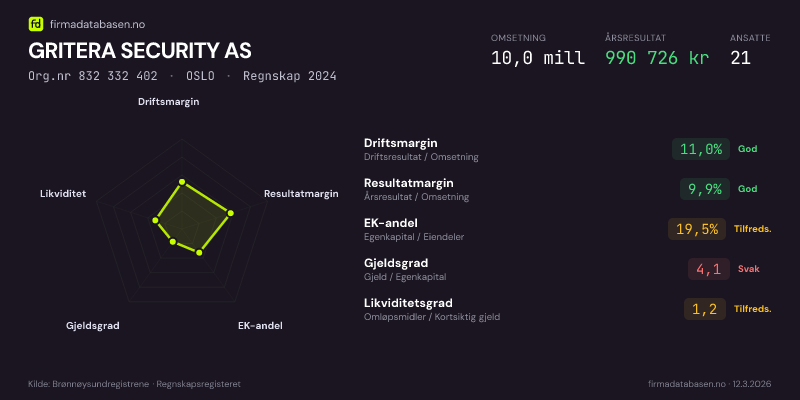 GRITERA SECURITY AS,OSLO — jo større areal, jo sterkere økonomi.Org.nr 832 332 402 · Regnskap2024