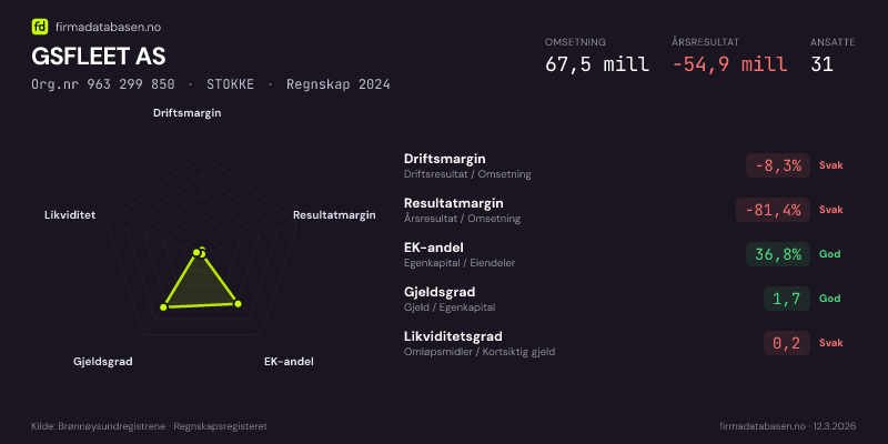 GSFLEET AS,STOKKE — jo større areal, jo sterkere økonomi.Org.nr 963 299 850 · Regnskap2024