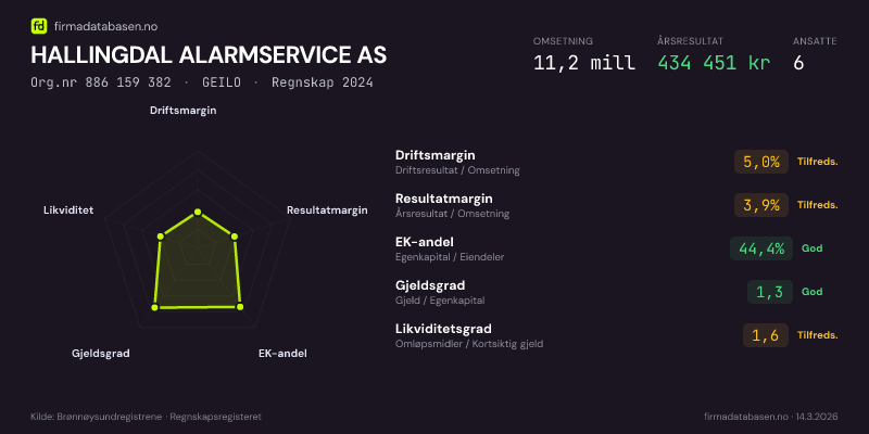 HALLINGDAL ALARMSERVICE AS,GEILO — jo større areal, jo sterkere økonomi.Org.nr 886 159 382 · Regnskap2024