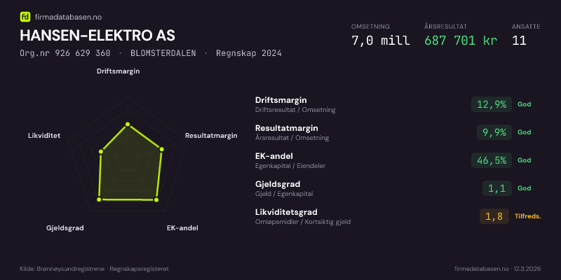 HANSEN-ELEKTRO AS,BLOMSTERDALEN — jo større areal, jo sterkere økonomi.Org.nr 926 629 360 · Regnskap2024