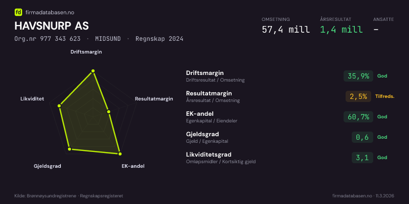 HAVSNURP AS,MIDSUND — jo større areal, jo sterkere økonomi.Org.nr 977 343 623 · Regnskap2024