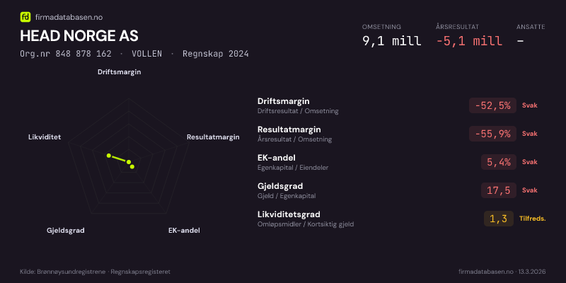 HEAD NORGE AS,VOLLEN — jo større areal, jo sterkere økonomi.Org.nr 848 878 162 · Regnskap2024