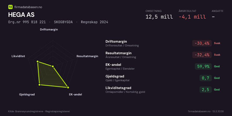 HEGA AS,SKOGBYGDA — jo større areal, jo sterkere økonomi.Org.nr 995 818 221 · Regnskap2024