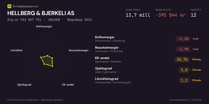 HELLBERG & BJERKELI AS,HALDEN — jo større areal, jo sterkere økonomi.Org.nr 933 557 731 · Regnskap2024