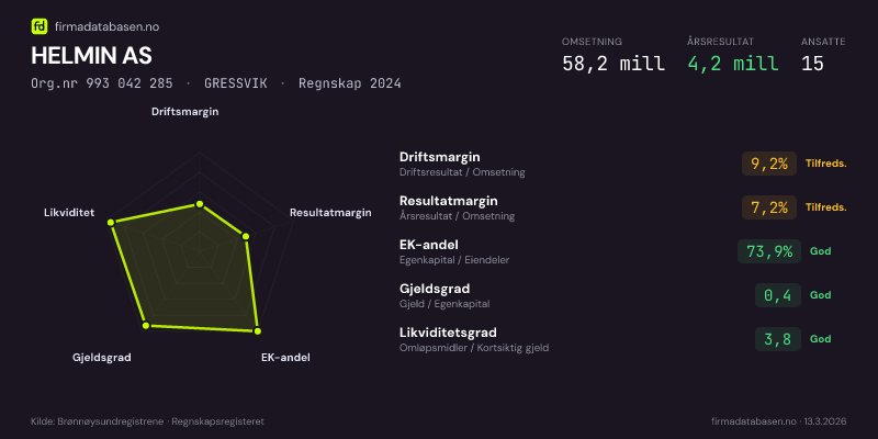 HELMIN AS,GRESSVIK — jo større areal, jo sterkere økonomi.Org.nr 993 042 285 · Regnskap2024