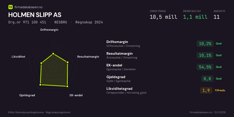 HOLMEN SLIPP AS,NESBRU — jo større areal, jo sterkere økonomi.Org.nr 971 100 451 · Regnskap2024
