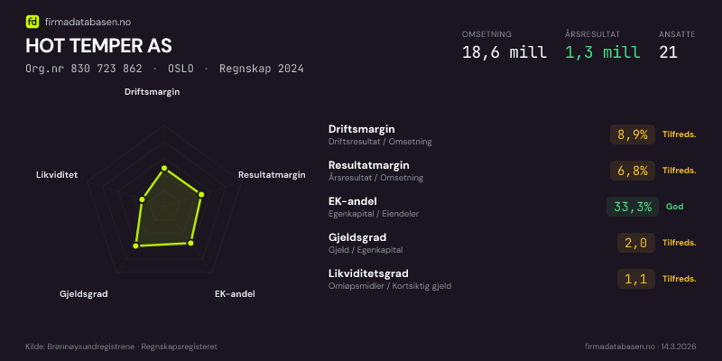 HOT TEMPER AS,OSLO — jo større areal, jo sterkere økonomi.Org.nr 830 723 862 · Regnskap2024