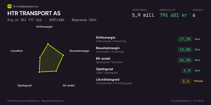 HTR TRANSPORT AS,SORTLAND — jo større areal, jo sterkere økonomi.Org.nr 831 777 362 · Regnskap2024