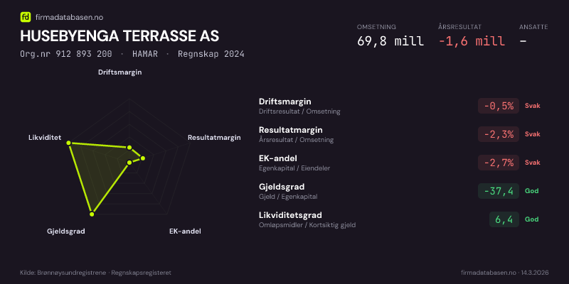 HUSEBYENGA TERRASSE AS,HAMAR — jo større areal, jo sterkere økonomi.Org.nr 912 893 200 · Regnskap2024