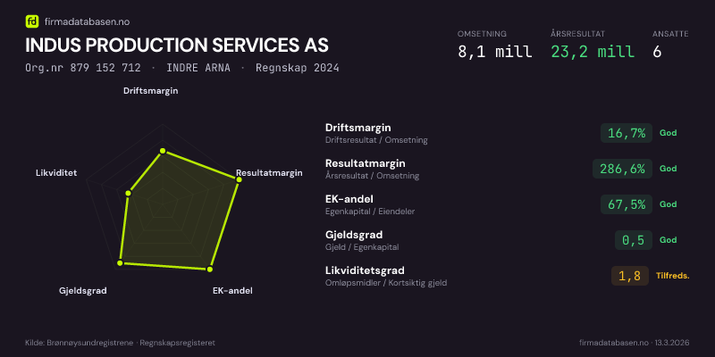 INDUS PRODUCTION SERVICES AS,INDRE ARNA — jo større areal, jo sterkere økonomi.Org.nr 879 152 712 · Regnskap2024