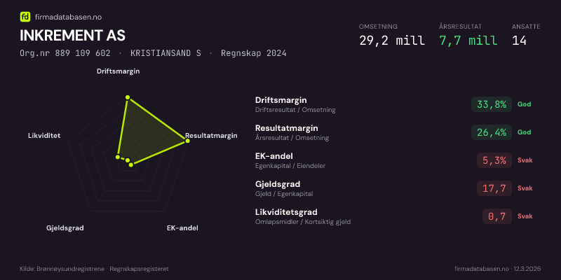 INKREMENT AS hadde en omsetning på 29.2 mill i 2024, med driftsmargin på 33.8%.