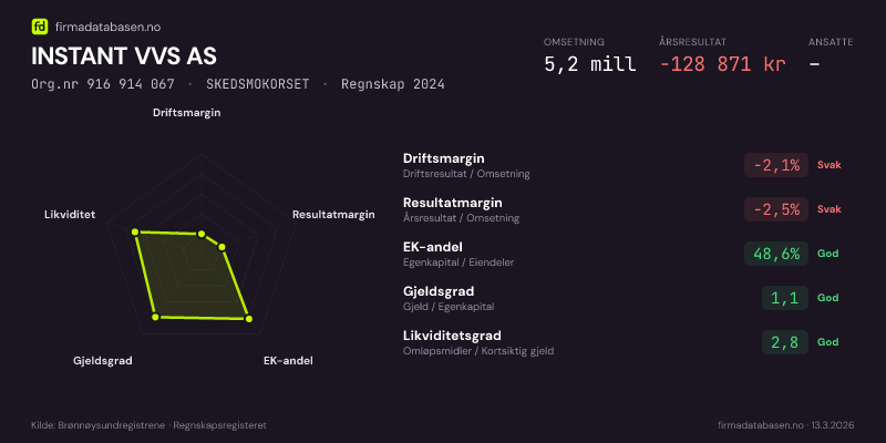 INSTANT VVS AS,SKEDSMOKORSET — jo større areal, jo sterkere økonomi.Org.nr 916 914 067 · Regnskap2024