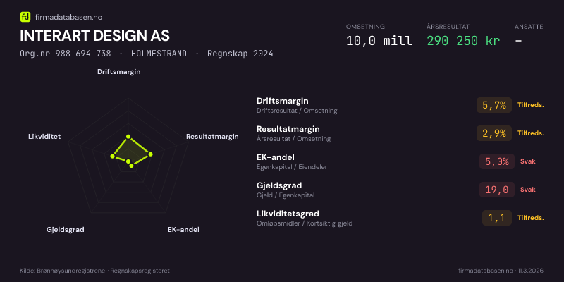 INTERART DESIGN AS,HOLMESTRAND — jo større areal, jo sterkere økonomi.Org.nr 988 694 738 · Regnskap2024