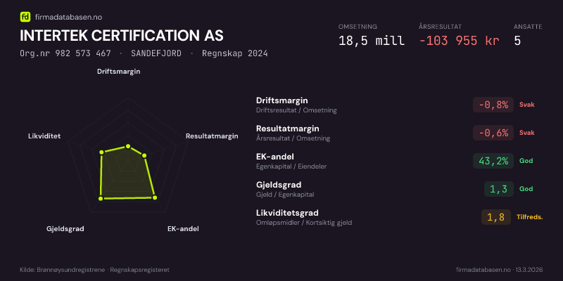 INTERTEK CERTIFICATION AS,SANDEFJORD — jo større areal, jo sterkere økonomi.Org.nr 982 573 467 · Regnskap2024
