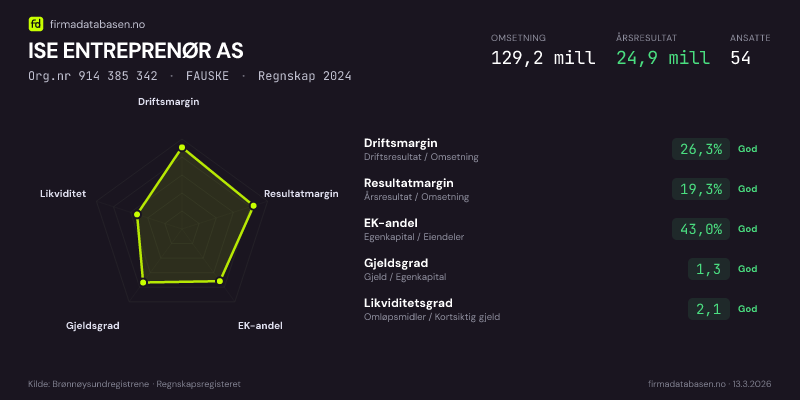 ISE ENTREPRENØR AS,FAUSKE — jo større areal, jo sterkere økonomi.Org.nr 914 385 342 · Regnskap2024