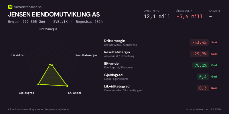 JENSEN EIENDOMUTVIKLING AS,SVELVIK — jo større areal, jo sterkere økonomi.Org.nr 992 805 366 · Regnskap2024