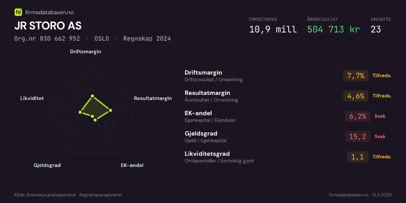 JR STORO AS,OSLO — jo større areal, jo sterkere økonomi.Org.nr 830 662 952 · Regnskap2024