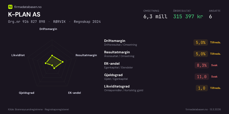 K-PLAN AS,RØRVIK — jo større areal, jo sterkere økonomi.Org.nr 926 827 898 · Regnskap2024