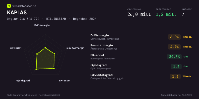 KAPI AS,BILLINGSTAD — jo større areal, jo sterkere økonomi.Org.nr 916 346 794 · Regnskap2024