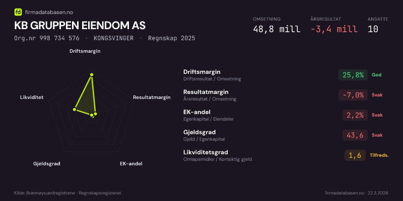 Kilde: Brønnøysundregistrene · Regnskapsregisteret · Sist oppdatert20. mars 2026