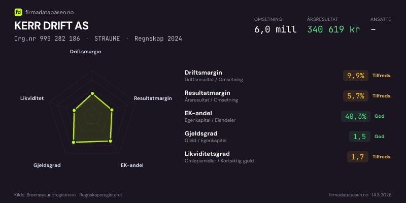 KERR DRIFT AS,STRAUME — jo større areal, jo sterkere økonomi.Org.nr 995 282 186 · Regnskap2024