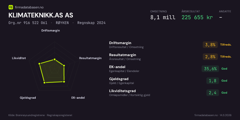 KLIMATEKNIKK.AS AS,RØYKEN — jo større areal, jo sterkere økonomi.Org.nr 916 522 061 · Regnskap2024
