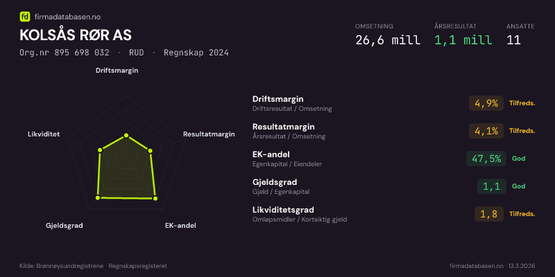 KOLSÅS RØR AS,RUD — jo større areal, jo sterkere økonomi.Org.nr 895 698 032 · Regnskap2024