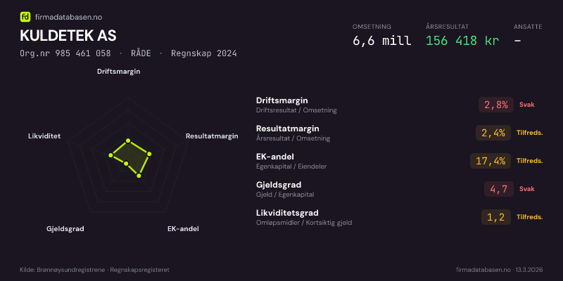 KULDETEK AS,RÅDE — jo større areal, jo sterkere økonomi.Org.nr 985 461 058 · Regnskap2024