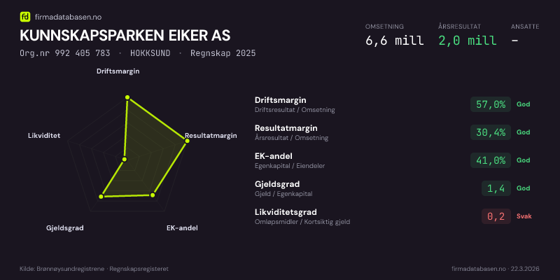 Kilde: Brønnøysundregistrene · Regnskapsregisteret · Sist oppdatert20. mars 2026