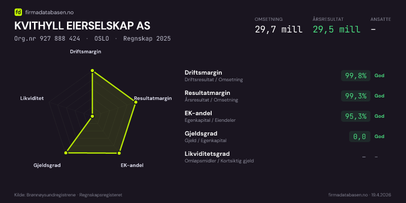 KVITHYLL EIERSELSKAP AS,OSLO — jo større areal, jo sterkere økonomi.Org.nr 927 888 424 · Regnskap2025