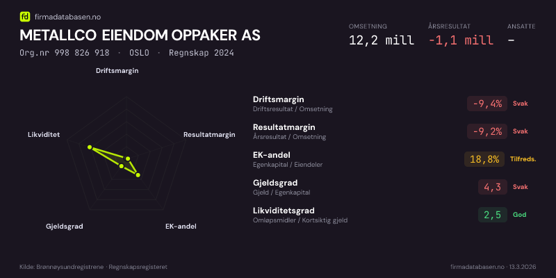 METALLCO EIENDOM OPPAKER AS,OSLO — jo større areal, jo sterkere økonomi.Org.nr 998 826 918 · Regnskap2024