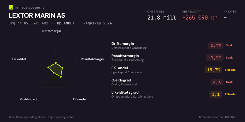 LEXTOR MARIN AS,BØLANDET — jo større areal, jo sterkere økonomi.Org.nr 898 335 402 · Regnskap2024