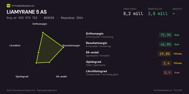 LIAMYRANE 5 AS,BERGEN — jo større areal, jo sterkere økonomi.Org.nr 922 973 733 · Regnskap2024
