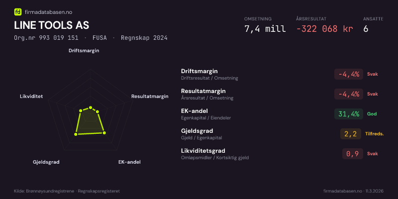 LINE TOOLS AS,FUSA — jo større areal, jo sterkere økonomi.Org.nr 993 019 151 · Regnskap2024