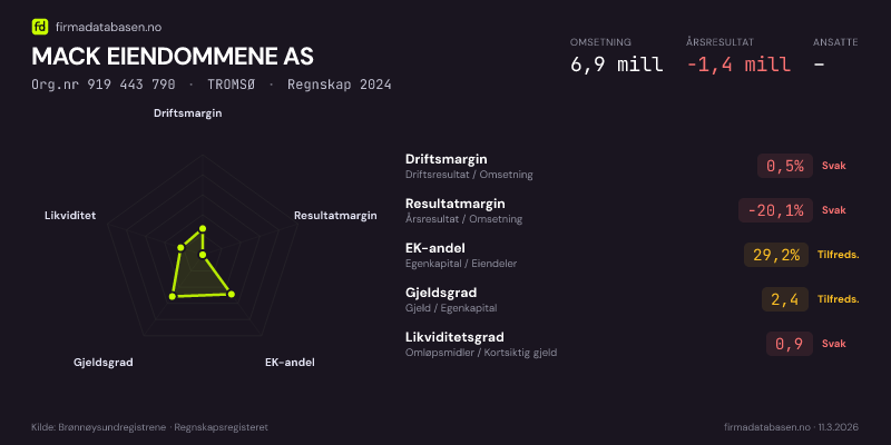 MACK EIENDOMMENE AS,TROMSØ — jo større areal, jo sterkere økonomi.Org.nr 919 443 790 · Regnskap2024