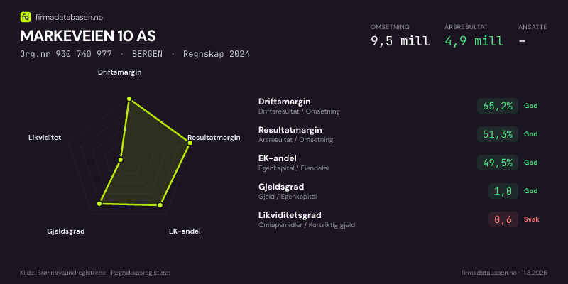 MARKEVEIEN 10 AS,BERGEN — jo større areal, jo sterkere økonomi.Org.nr 930 740 977 · Regnskap2024