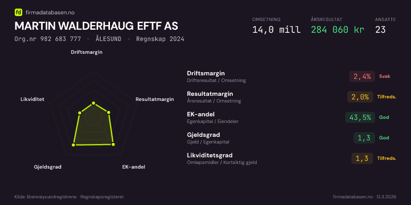 MARTIN WALDERHAUG EFTF AS,ÅLESUND — jo større areal, jo sterkere økonomi.Org.nr 982 683 777 · Regnskap2024