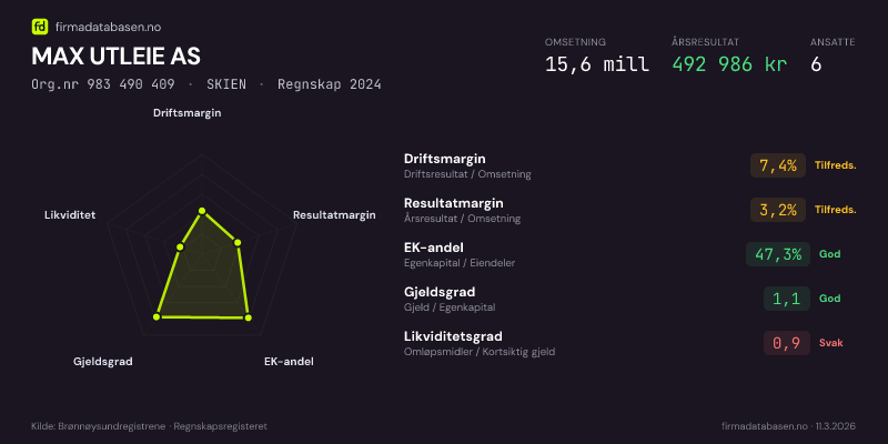 MAX UTLEIE AS,SKIEN — jo større areal, jo sterkere økonomi.Org.nr 983 490 409 · Regnskap2024