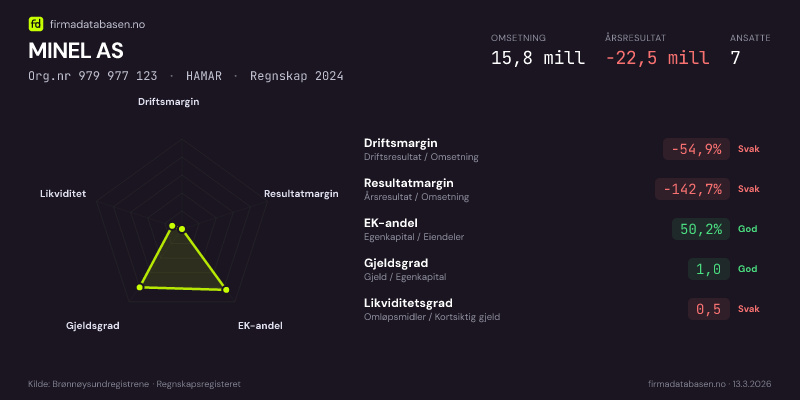 MINEL AS,HAMAR — jo større areal, jo sterkere økonomi.Org.nr 979 977 123 · Regnskap2024